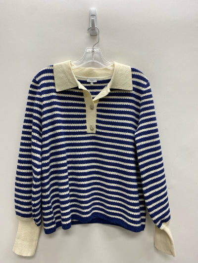 Size M Cream/Blue Striped Puff Sleeve Ladies Sweater