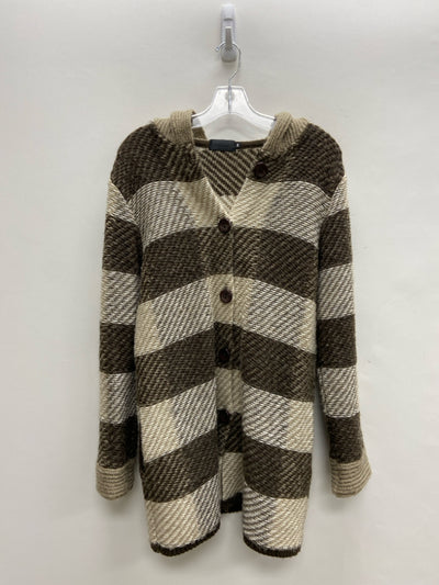 Size M Brown/Cream Beige Striped Button Up Ladies Sweater