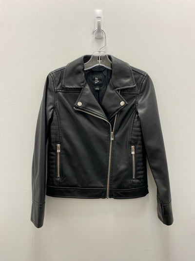 SIZE M Black Zip Down Faux Leather Girl's Jacket