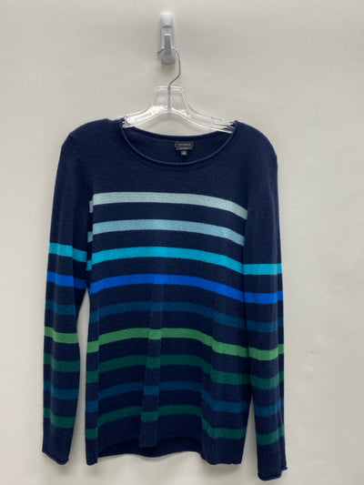 Talbots Size M Navy Aqua/Green Striped Cashmere Ladies Sweater