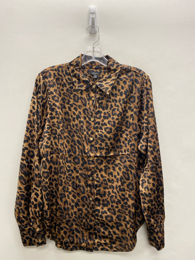 Talbots Size M Brown Black Animal Print Button Up Ladies Top