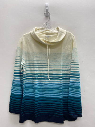 Talbots Size M Cream/Blue Aqua Striped Mock Neck Ladies Sweater