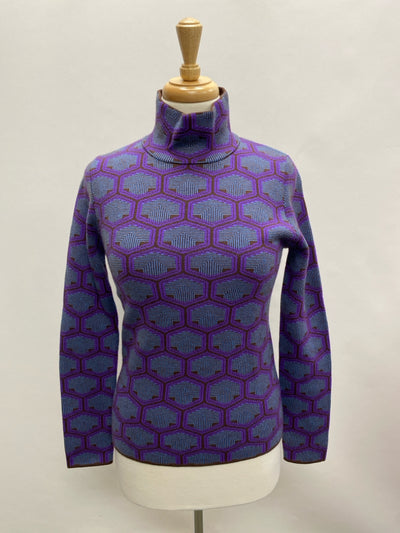 Tory Burch Size M Purple Blue/Brown Honeycomb Turtleneck Merino Ladies Sweater