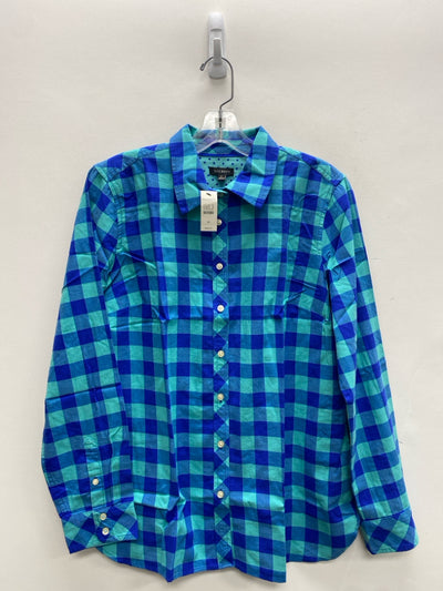 Talbots Size M Royal Blue Aqua Checkered Button Up Ladies Top