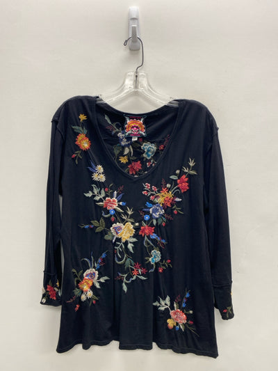 JOHNNY WAS Size M Black Multi Color V Neck Embroidered Ladies Top