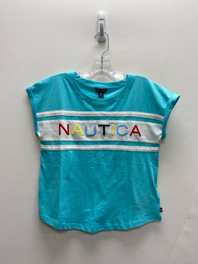 Nautica SIZE 12/14 Aqua/Wht Multi Color Logo Girl's Top