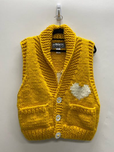 Size OSFM Yellow White Hearts Button Up Ladies Sweater Vest
