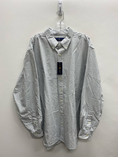 Ralph Lauren Size 2X White Gray Checkered Button Up Men's Long Sleeve Shirt