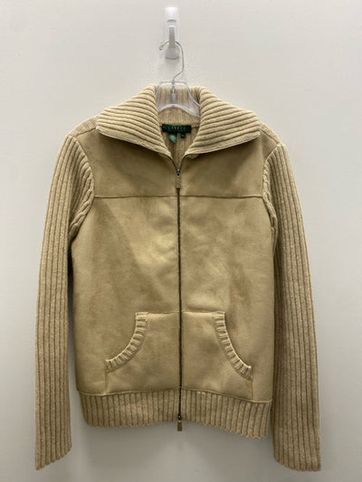 Ralph Lauren Size M Beige Zip Down Faux Suede Ladies Sweater