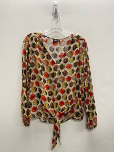 APNY Size S Cream/Green Red/Yellow Geometric V Neck Sheer Ladies Top