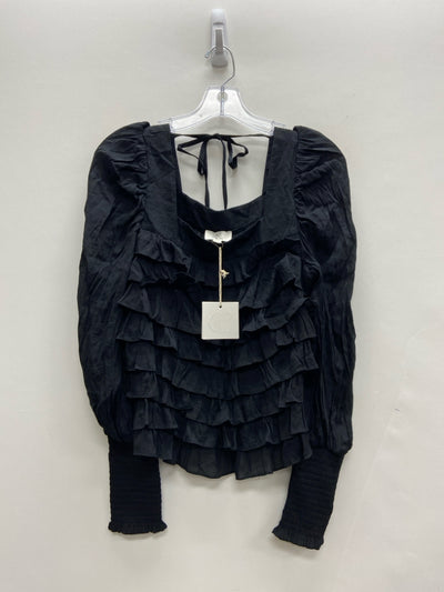Pomander Place Size S Black Ruffles Puff Sleeve Velour Ladies Top