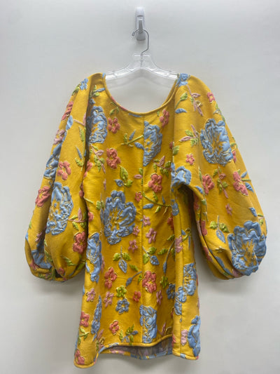 Size S Mustard Gold/Multi Flowers Puff Sleeve Ladies Dress