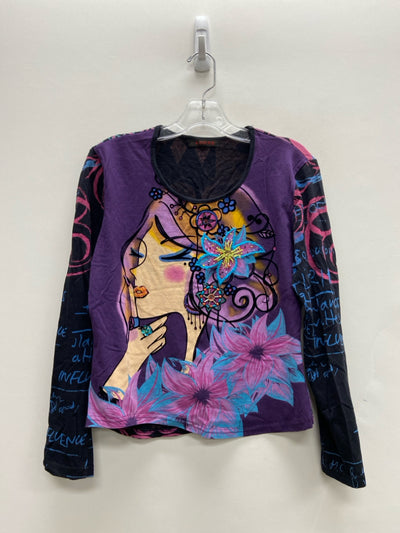 Size S Purple Black/Blue Faces Embroidered Ladies Top