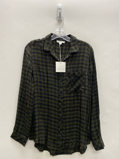 beachlunchlounge Size S Dark Green Black Plaid Button Up Ladies Top