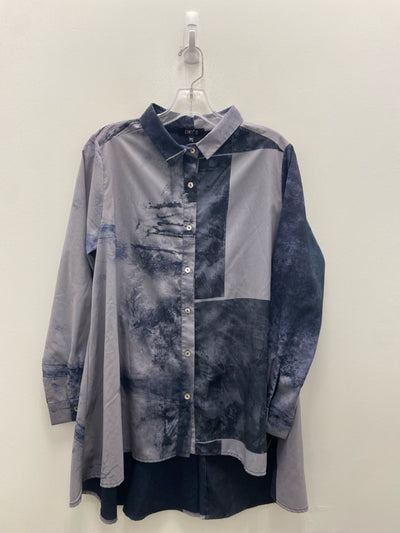 Comfy USA Size S Gray/Navy Lavender Print Button Up Ladies Top