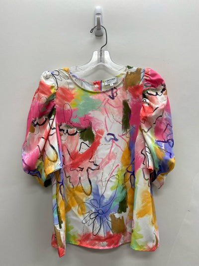 Crosby Size S White Multi Color Abstract Puff Sleeve Ladies Top