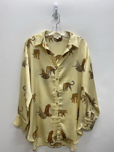 entro Size S Ivory Camel Jungle Animals Button Up Ladies Top