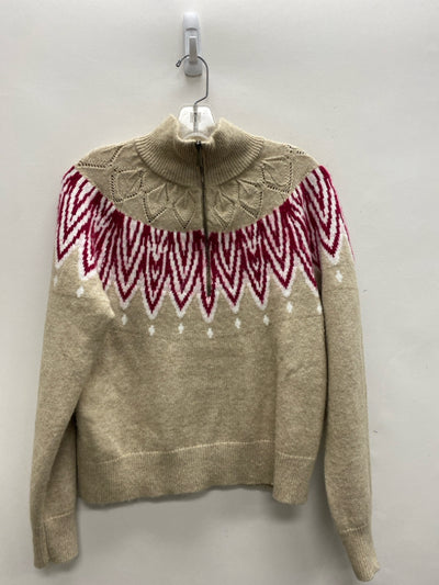 LOFT Size S Tan/White Raspberry Quarter Zip Ladies Sweater