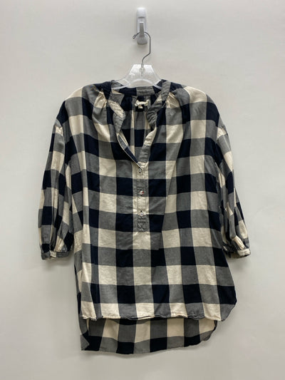 Lucky Brand Size S Navy Blue/Gray Print Button Up Ladies Top