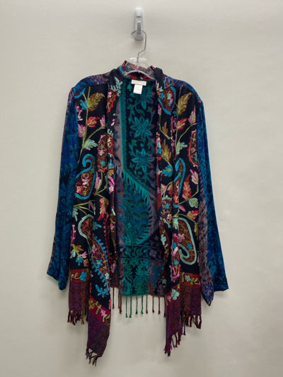 Soft Surroundings Size L Black Blue/Multi Flowers Embroidered Ladies Sweater