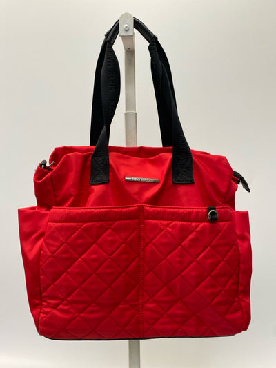 Steve Madden Red Black Quilted Nylon Tote Bag
