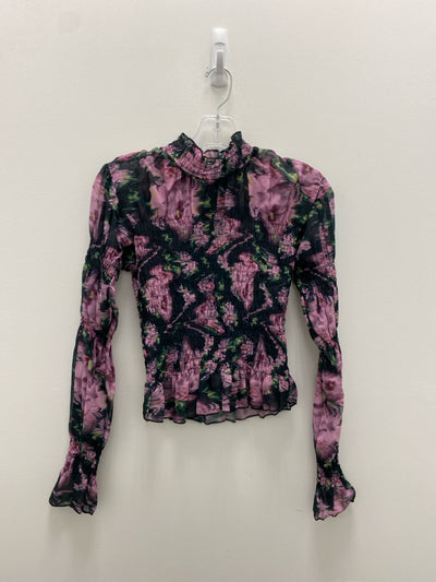 Steve Madden Size XS Black Lavender/Green Floral Sheer Ladies Top