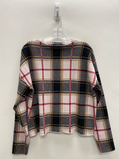 Tahari Size L Black/White Red/Tan Plaid Ladies Sweater