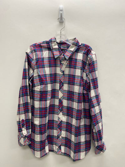 Talbots Size L White/Red Periwinkle/Black Plaid Button Up Ladies Top
