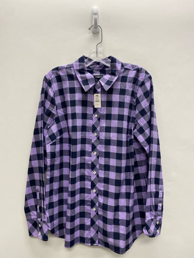 Talbots Size L Lavender Navy Checkered Button Up Ladies Top