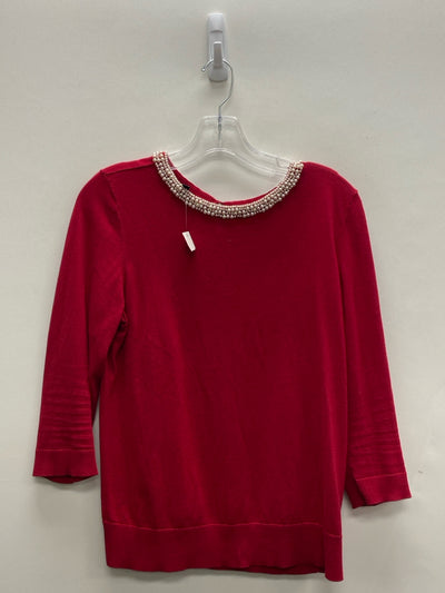Talbots Size M Red Navy Trimmed Cardigan Ladies Sweater