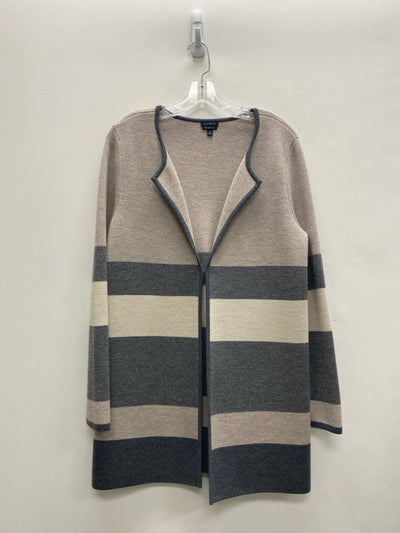 Talbots Size M Taupe Gray/Cream Striped Drape Ladies Sweater