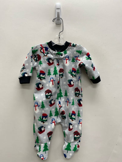 The Place SIZE 0-3M Gray Red/Black Penguin Fleece Boy's Pajamas