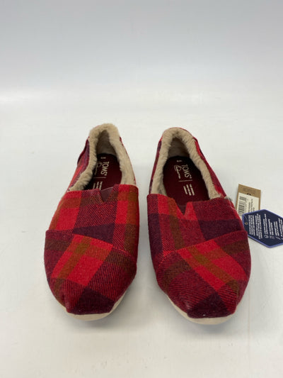 Toms Size 8 Red Plaid Flats