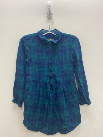 Vineyard Vines SIZE 7 Navy Teal Green Plaid Quarter Button Girl's Dress