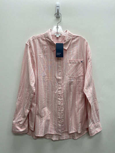 Crown & Ivy Size XL Pink White Striped Button Up Ladies Top
