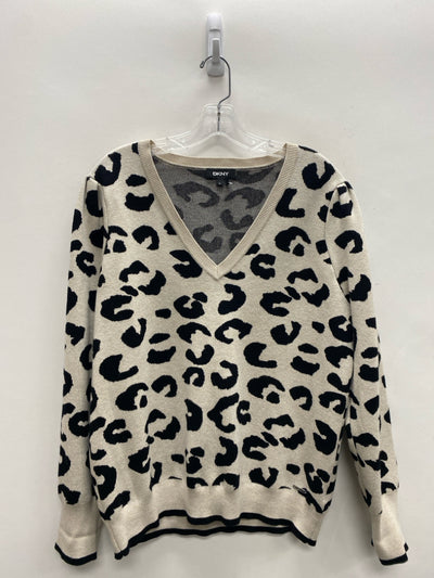 DKNY Size XL Beige Black Animal Print V Neck Ladies Sweater