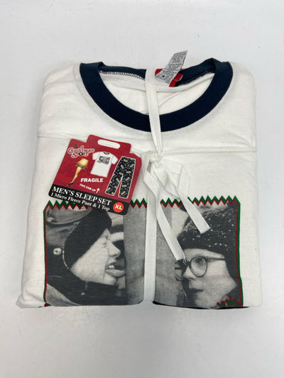 Size XL White Black/Multi Christmas Fleece Men's Pajamas