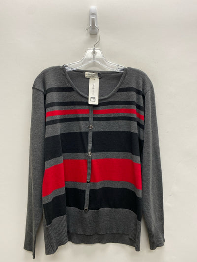 Size XL Gray Red/Black Striped Cardigan Ladies Sweater