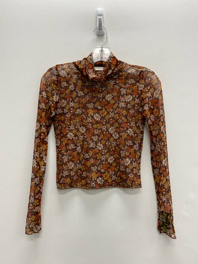 altar'd state Size XS Brown/Cream Orange/Gold Flowers Mesh Ladies Top