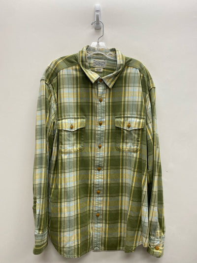 Lucky Brand Size XXL Green/Yellow Blue/Cream Plaid Men's Long Sleeve Shirt
