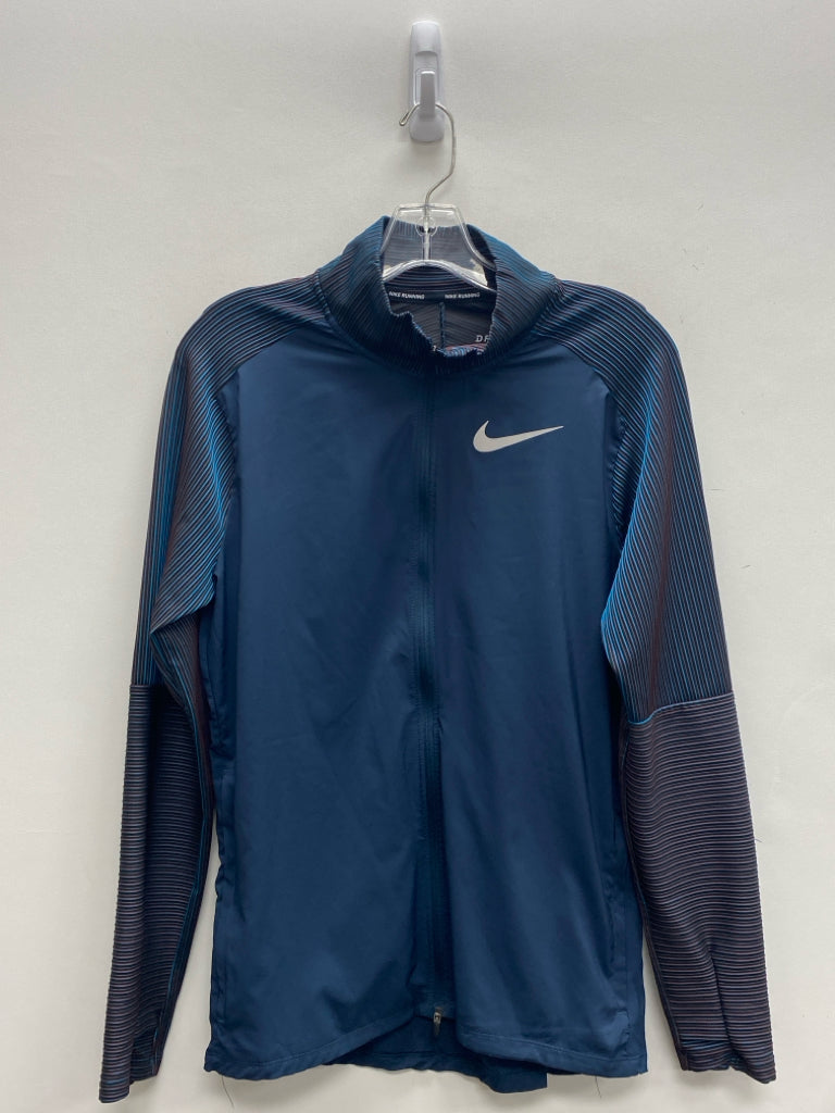 Nike Size S Navy Aqua/Red Pinstripe Zip Down Athletic Jacket
