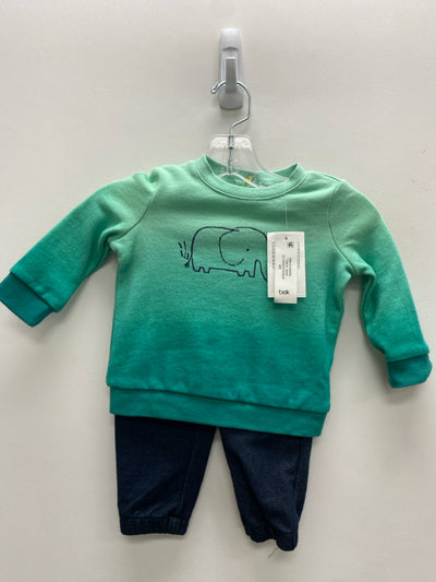 Crown & Ivy SIZE 6M Mint Green Navy Elephant(s) Boy's 2pc