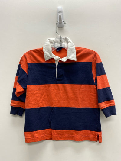 Lands End SIZE 8 Orange/Navy Stripe Boy's Shirt