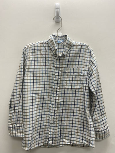 Bella Bliss SIZE 7 White/Brown Navy/Green Squares Button Up Boy's Shirt
