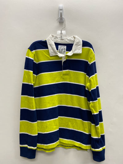Lands End SIZE 14/16 Navy/white Neon Yellow Stripe Polo Style Boy's Shirt