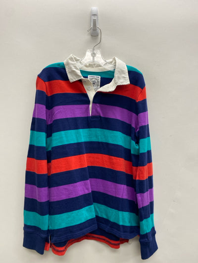 Lands End SIZE 14/16 Navy/Aqua Purple/Red Stripe Polo Style Boy's Shirt