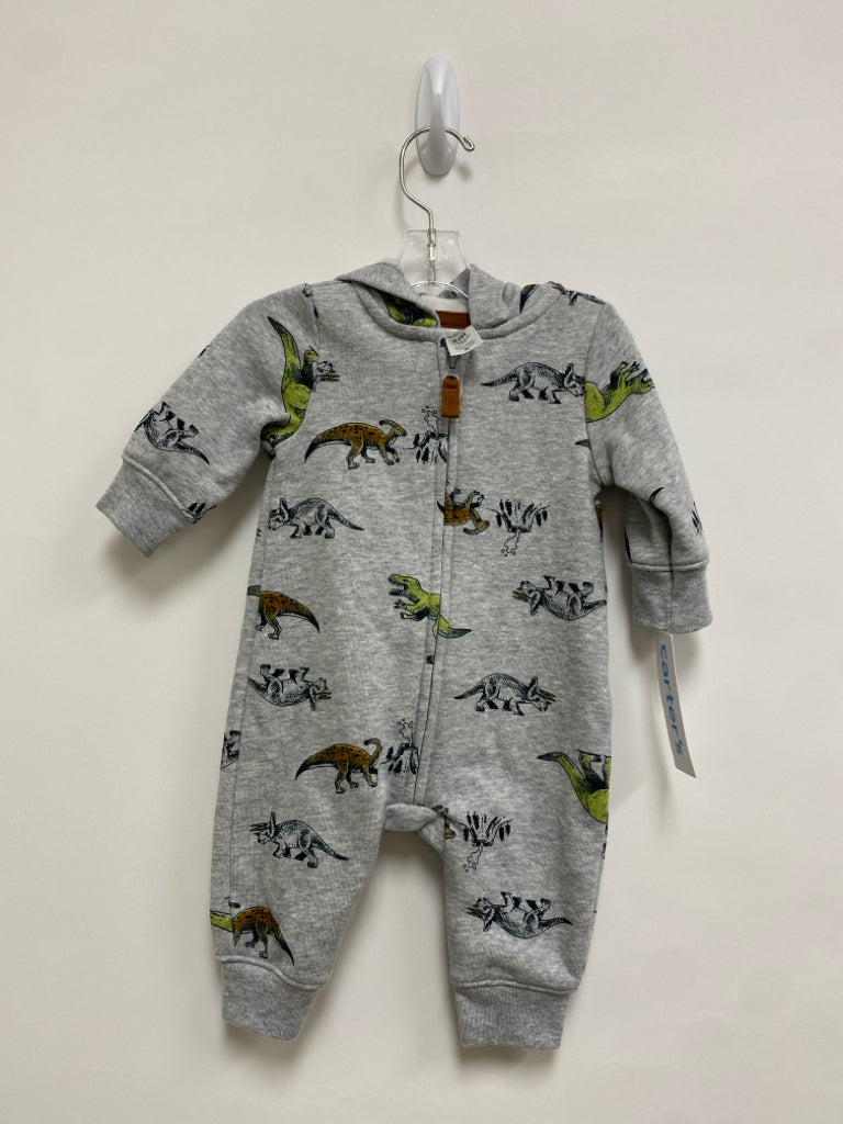 Carter's SIZE 3M Gray Green/Brown Dinosaurs Zip Down Boy's 1pc