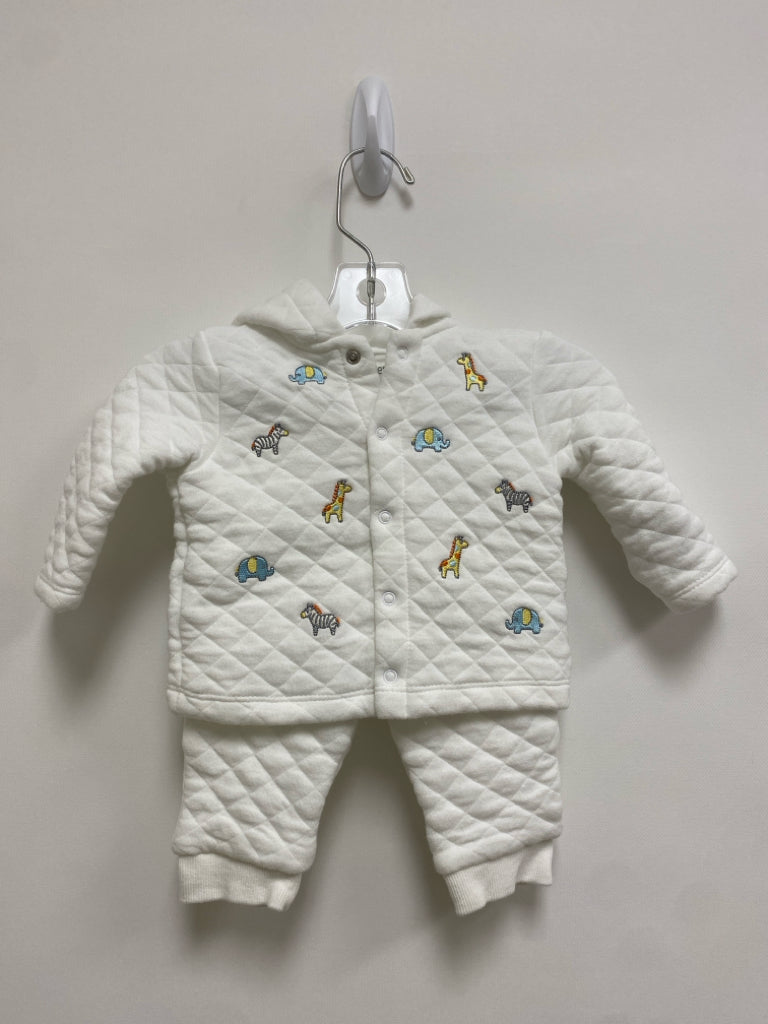 Little Me SIZE 6M White Blue/Yellow Zoo Animals Quilted Boy's 2pc