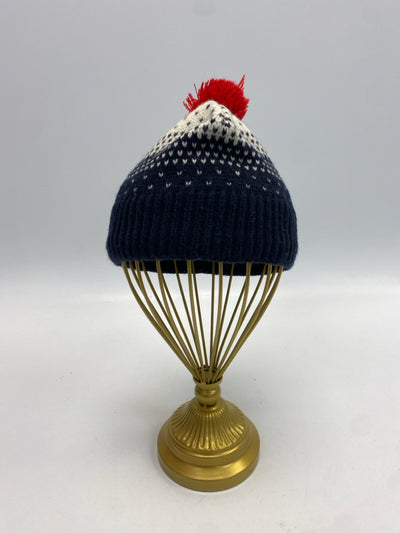 North Face SIZE M Navy Cream/Red Pom Pom Girl's Hat