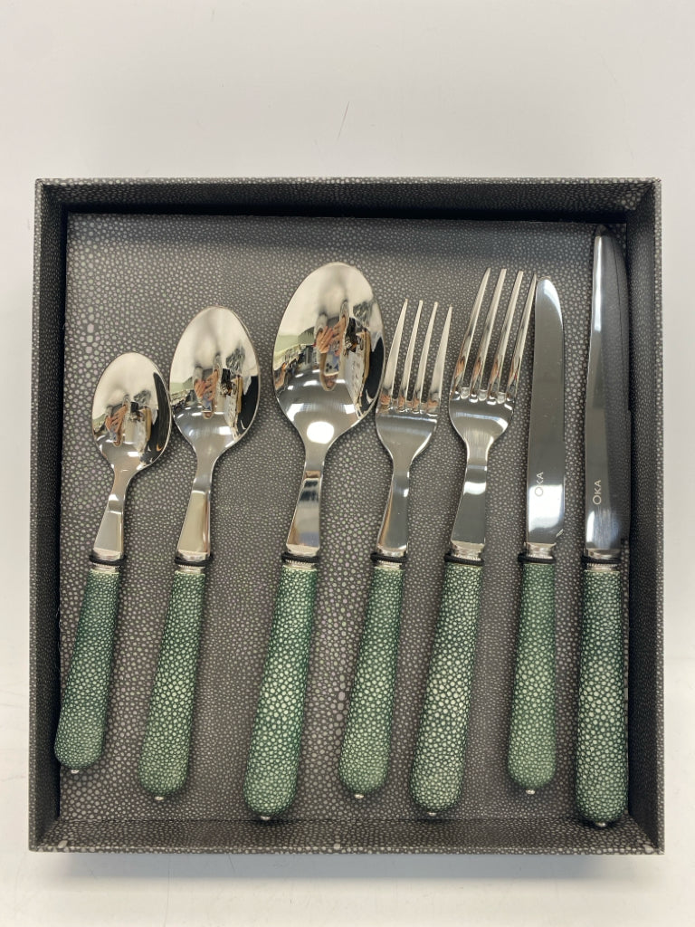 [{"id":41967444033639,"title":"Silver","option1":"Silver","option2":null,"option3":null,"sku":"26817-783","requires_shipping":true,"taxable":true,"featured_image":null,"available":true,"name":"Silver Green Speckles Flatware - Silver","public_title":"Silver","options":["Silver"],"price":4750,"weight":453139,"compare_at_price":9500,"inventory_management":"shopify","barcode":"03980099","requires_selling_plan":false,"selling_plan_allocations":[]}]